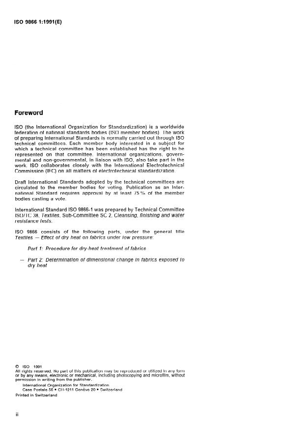 ISO 9866-1:1991 - Textiles -- Effect of dry heat on fabrics under low pressure