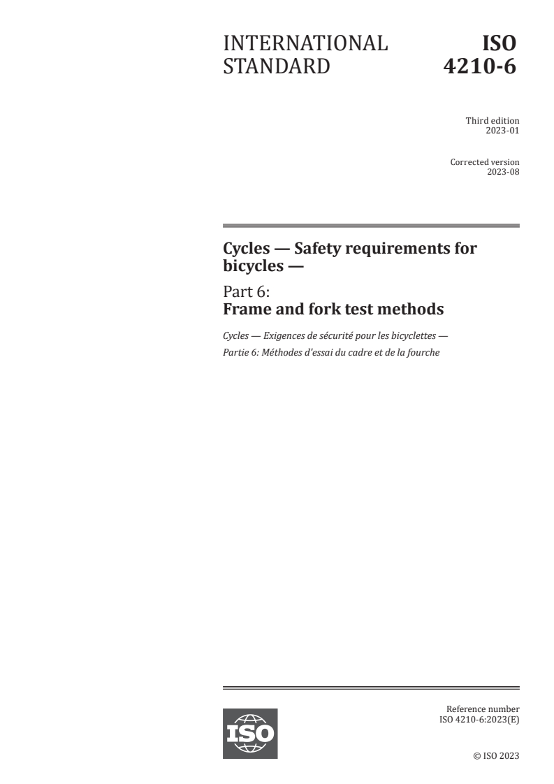 ISO 4210-6:2023 - Cycles — Safety requirements for bicycles — Part 6: Frame and fork test methods Released:8/22/2023