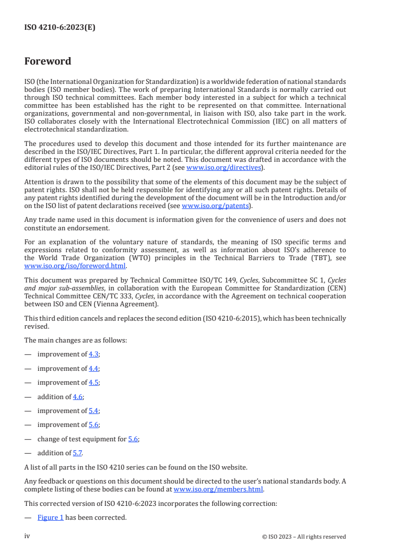 ISO 4210-6:2023 - Cycles — Safety requirements for bicycles — Part 6: Frame and fork test methods Released:11. 01. 2023