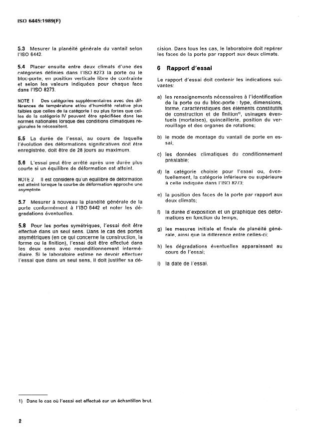 ISO 6445:1989 - Portes et blocs-portes -- Essai de comportement entre deux climats différents