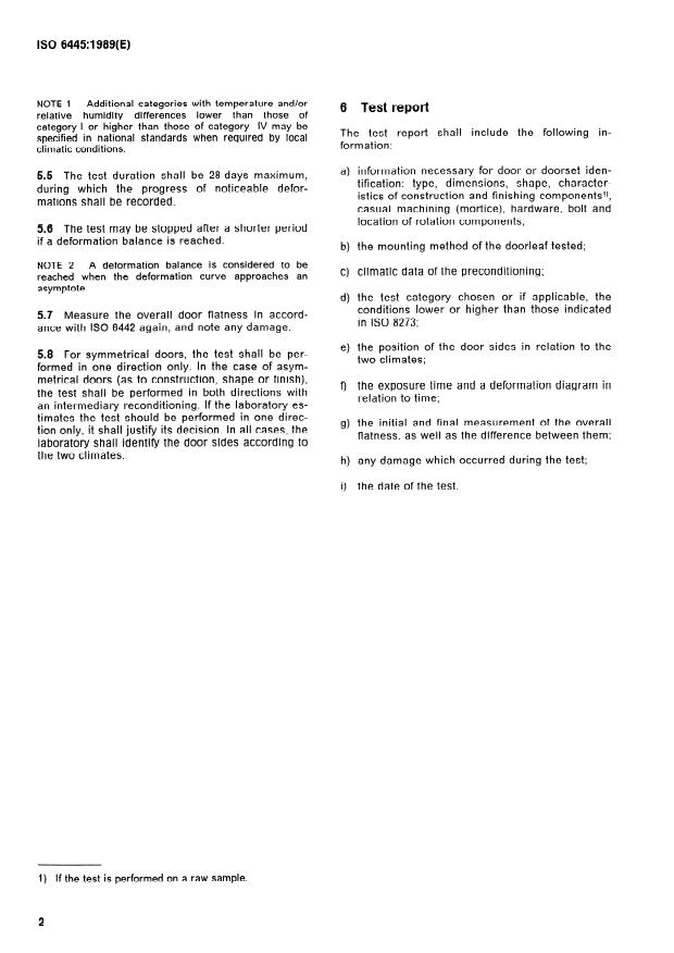 ISO 6445:1989 - Doors and doorsets -- Test of behaviour between two different climates