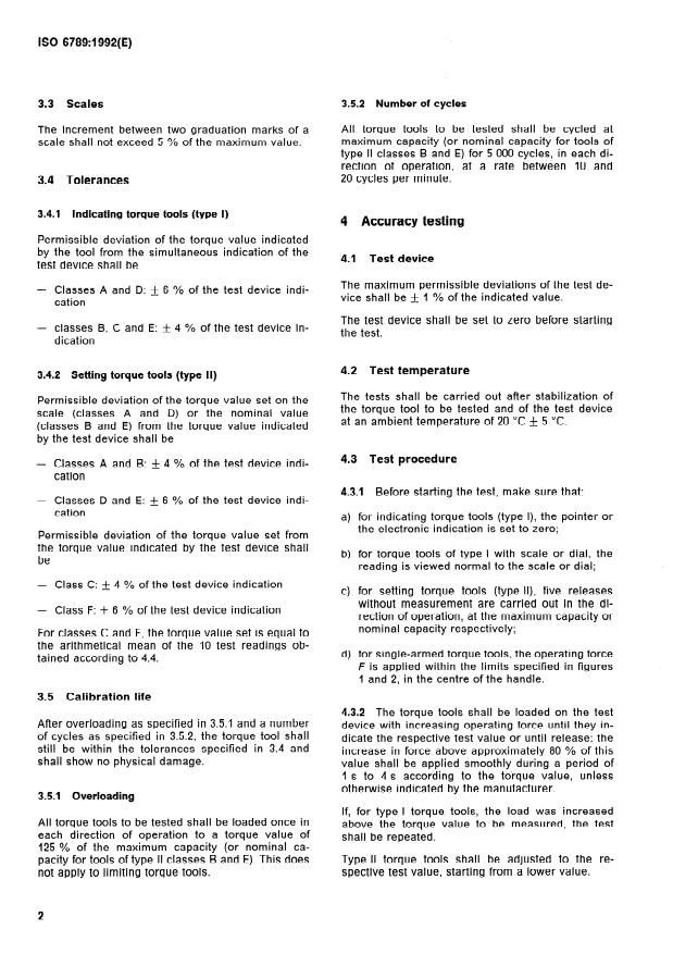 ISO 6789:1992 is a standard published by the International Organization for Standardization (ISO). Its full title is "Assembly tools for screws and nuts — Hand torque tools — Requirements and test methods". This standard covers: Applies to indicating and setting torque wrenches according to numbers 258 and 259 of ISO 1703. Requirements and test methods are related to assignment of driving square, measuring range, scales, tolerances, accuracy testing, and marking.