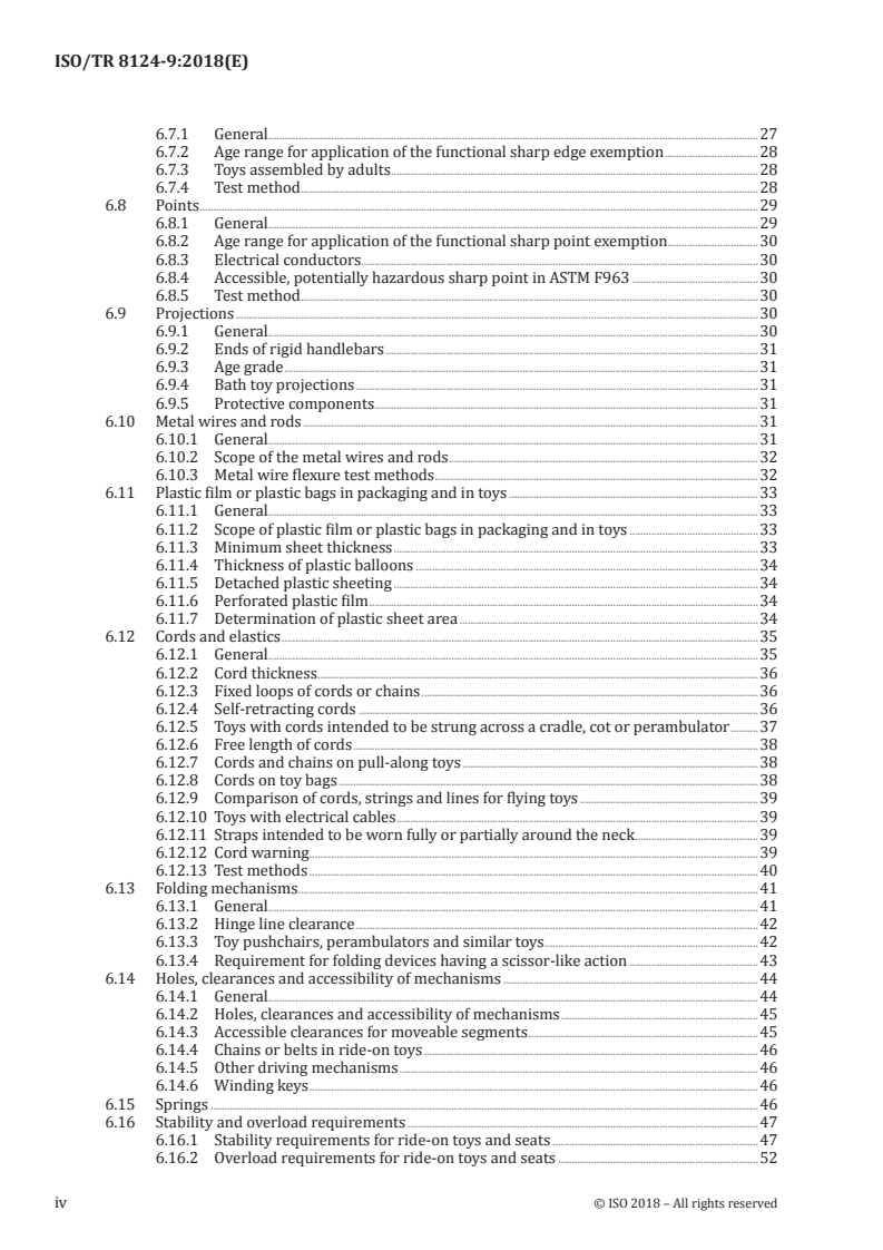 ISO/TR 8124-9:2018 is a technical report published by the International Organization for Standardization (ISO). Its full title is "Safety of toys — Part 9: Safety aspects related to mechanical and physical properties — Comparison of ISO 8124-1, EN 71-1, and ASTM F963". This standard covers: This document consists of a comparison of the mechanical and physical requirements covered by the following toy safety standards: a) ISO: ISO 8124‑1:2014; b) Europe (CEN): EN 71‑1:2014; c) USA: ASTM F963:2011.