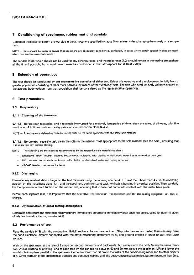 7 Conditioning of specimens, rubber mat and sandals