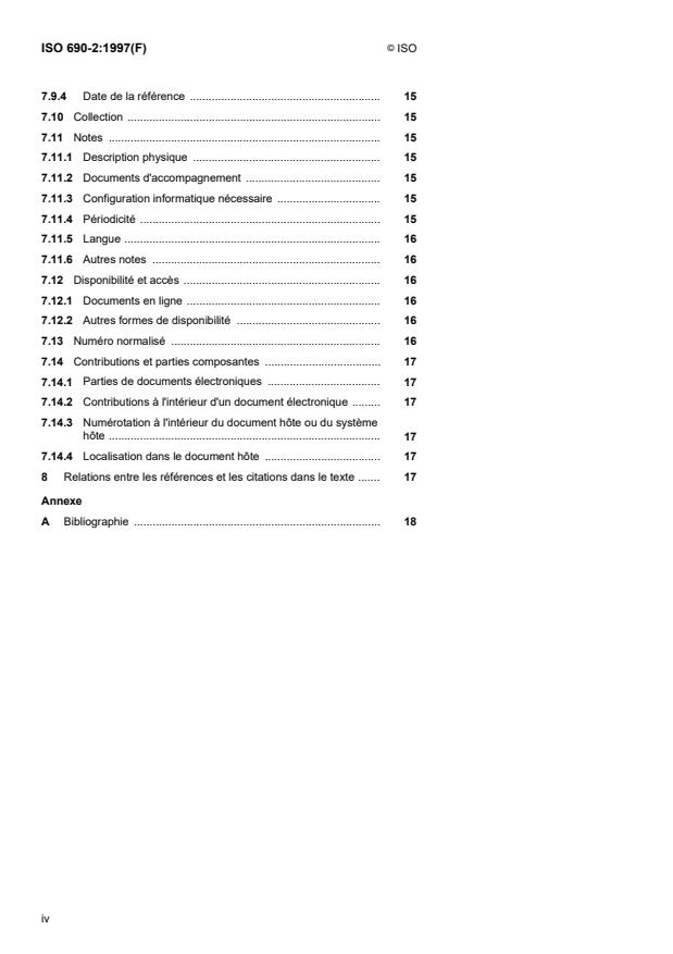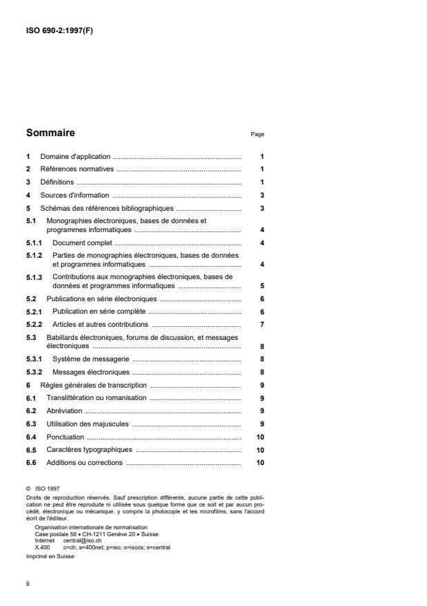 La présente partie de l'ISO 690 précise les éléments à mentionner dans les références bibliographiques aux documents électroniques. Elle détermine un ordre obligatoire pour les éléments de la référence et établit des règles pour la transcription et la présentation de l'information provenant du document électronique source. La présente partie de l'ISO 690 est destinée aux auteurs et aux éditeurs pour l'établissement de listes de références de documents électroniques à inclure dans une bibliographie, et pour la formulation des citations dans le texte correspondant aux entrées de la bibliographie. Elle ne s'applique pas aux descriptions bibliographiques complètes exigées par les bibliothécaires, les bibliographes, les indexeurs, etc.