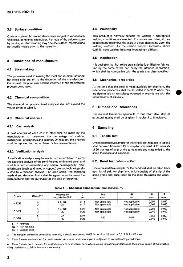 ISO 6316:1982 is a standard published by the International Organization for Standardization (ISO). Its full title is "Hot-rolled steel strip of structural quality". This standard covers: Hot-rolled steel strip of structural quality