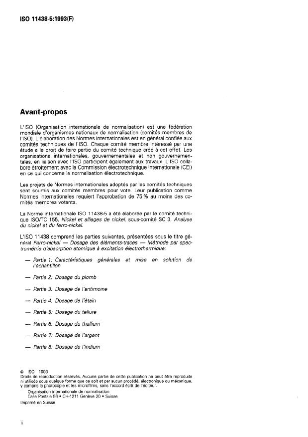 ISO 11438-5:1993 - Ferronickel -- Determination of trace-element content by electrothermal atomic absorption spectrometric method