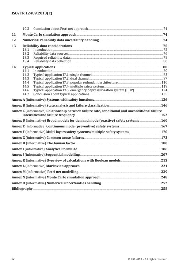 Keywords: ISO/TR 12489:2013, reliability modelling, safety systems, petroleum, petrochemical, natural gas, probabilistic calculations, fault tree, reliability block diagram, Markov, Petri net, Monte Carlo, common cause failures.