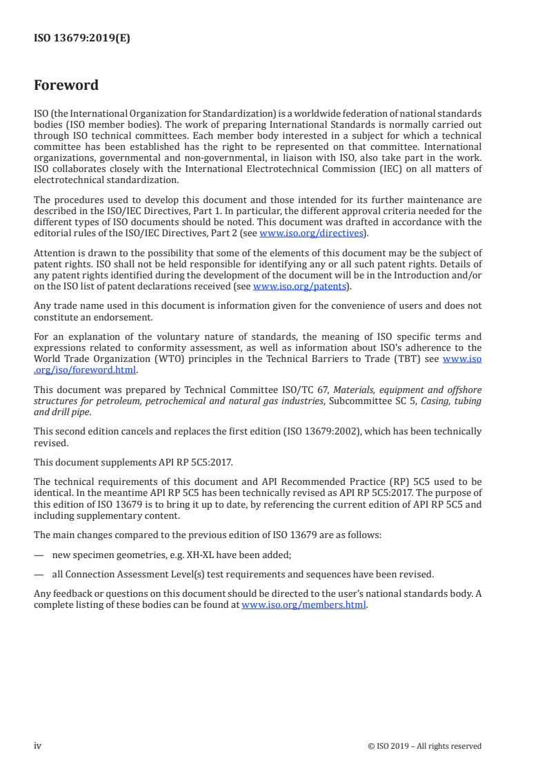- Supplement to API RP 5C5:2017: ISO 13679:2019 replaces or augments specific clauses in API RP 5C5 where noted and requires manufacturers to provide a test plan and detailed connection data.