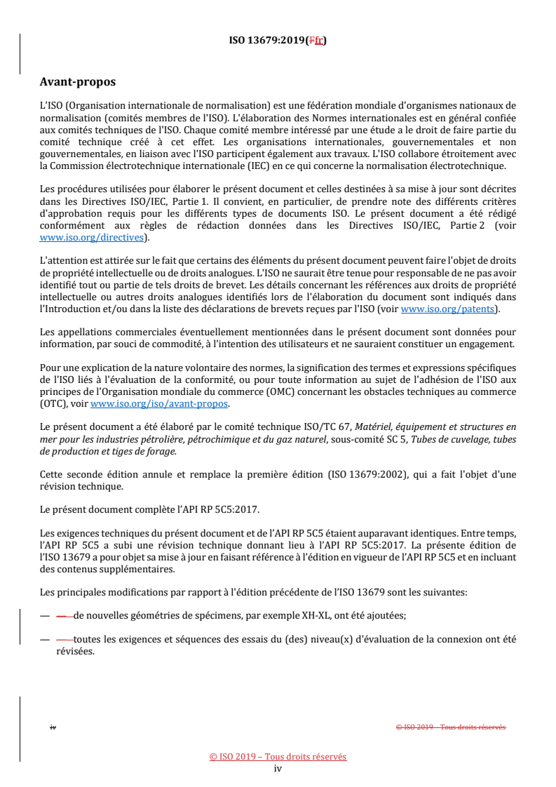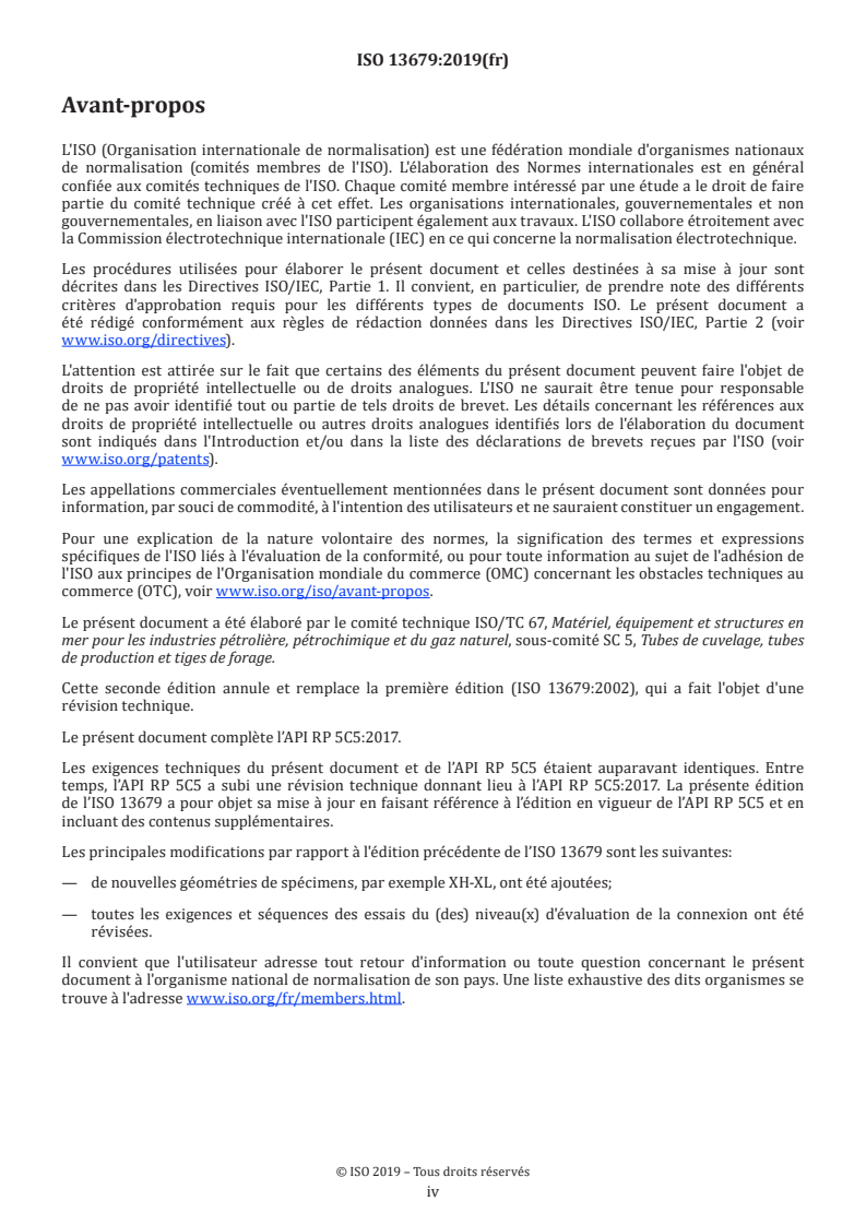 l’ISO 13679 a pour objet sa mise à jour en faisant référence à l’édition en vigueur de l’API RP 5C5 et en incluant