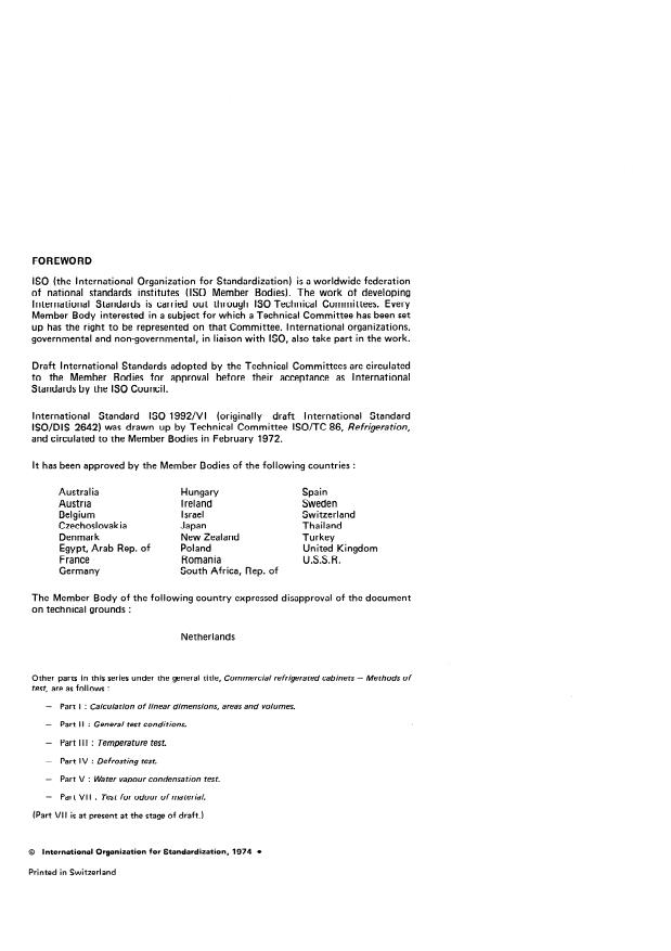 ISO 1992-6:1974 - Commercial refrigerated cabinets -- Methods of test