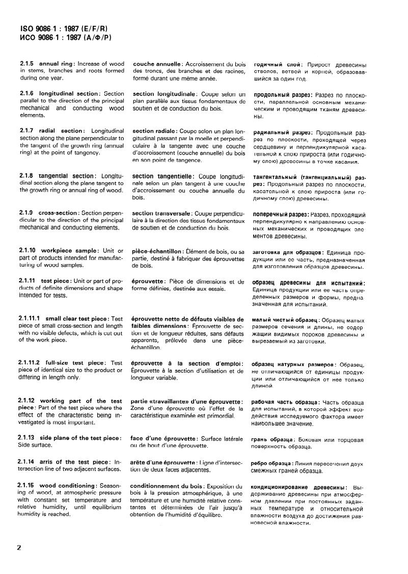 ISO 9086-1:1987 is a standard published by the International Organization for Standardization (ISO). Its full title is "Wood — Methods of physical and mechanical testing — Vocabulary — Part 1: General concepts and macrostructure". This standard covers: Gives terms and definitions relating to physical and mechanical properties of wood. Wood is defined as aggregate of secondary tissues (conductive, mechanical and storing) found in stems, branches and roots of woody plants between the bark and pith.
