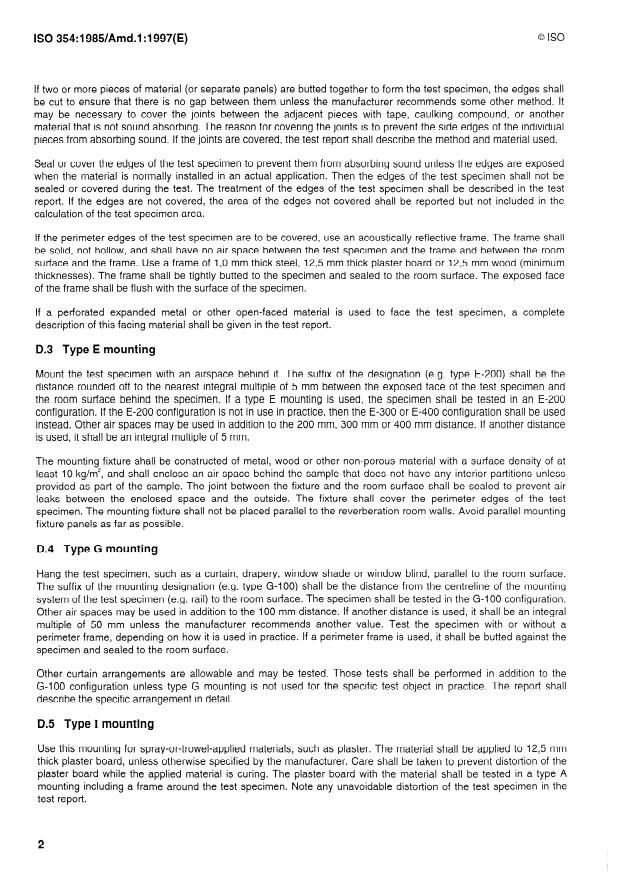 AMENDMENT I: Test specimen mountings for sound absorption tests