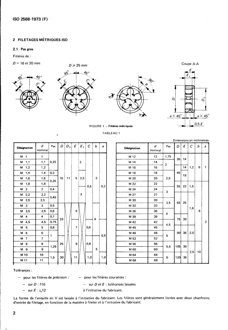 d'entrée de filetage, en fonction de la matière à fileter et à l'initiative du fabricant.