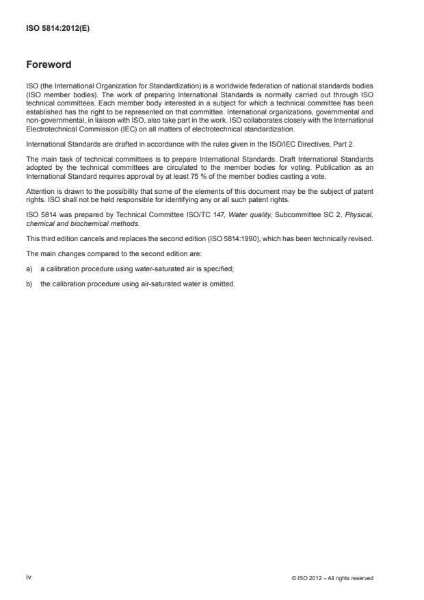 ISO 5814:2012 - Water quality -- Determination of dissolved oxygen -- Electrochemical probe method
