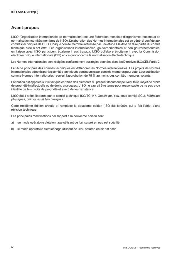 ISO 5814:2012 - Qualité de l'eau -- Dosage de l'oxygene dissous -- Méthode électrochimique a la sonde