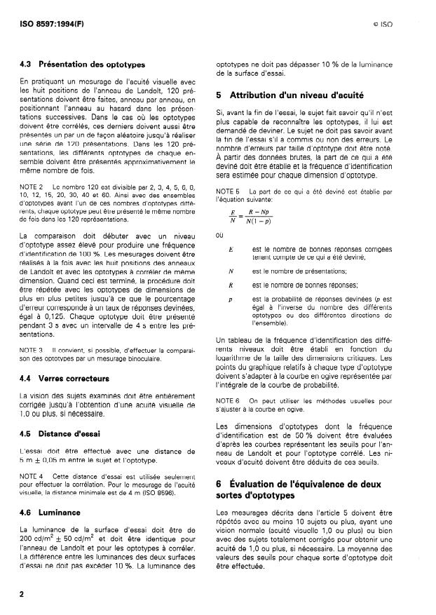 ISO 8597:1994 - Optique et instruments d'optique -- Méthode d'essai de l'acuité visuelle -- Méthode de corrélation entre les optotypes