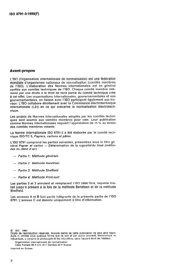 ISO 8791-3:1990 - Papier et carton -- Détermination de la rugosité/du lissé (méthodes du débit d'air)