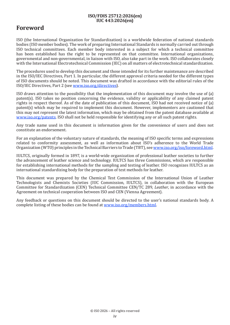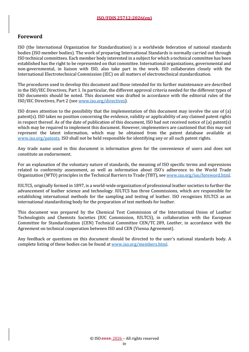 REDLINE ISO/FDIS 25712 - Chemicals for the leather tanning industry — Determination of the total content of melamine Released:12. 01. 2026
