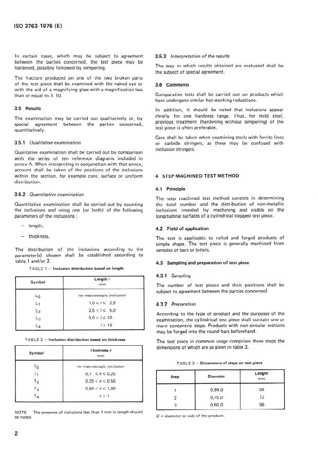 Keywords: ISO 3763, wrought steels, non‑metallic inclusions, macroscopic methods, blue fracture test, step‑machined test, magnetic particle inspection, inclusion stringers, sampling and preparation.