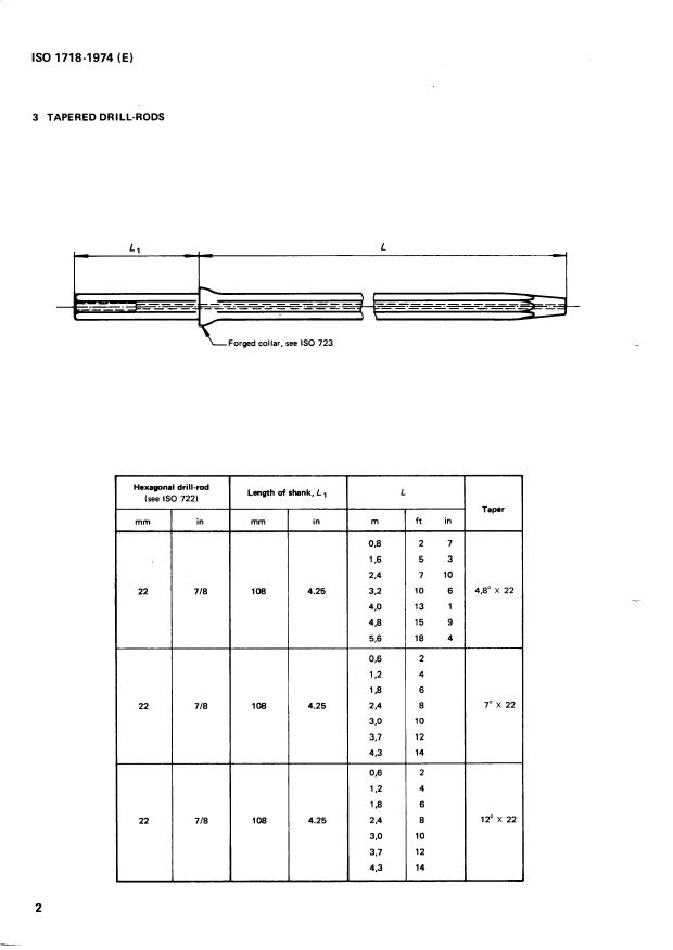 ISO 1718:1974 is a standard published by the International Organization for Standardization (ISO). Its full title is "Rock drilling — Drill-rods and detachable bits for percussive drilling". This standard covers: Rock drilling — Drill-rods and detachable bits for percussive drilling