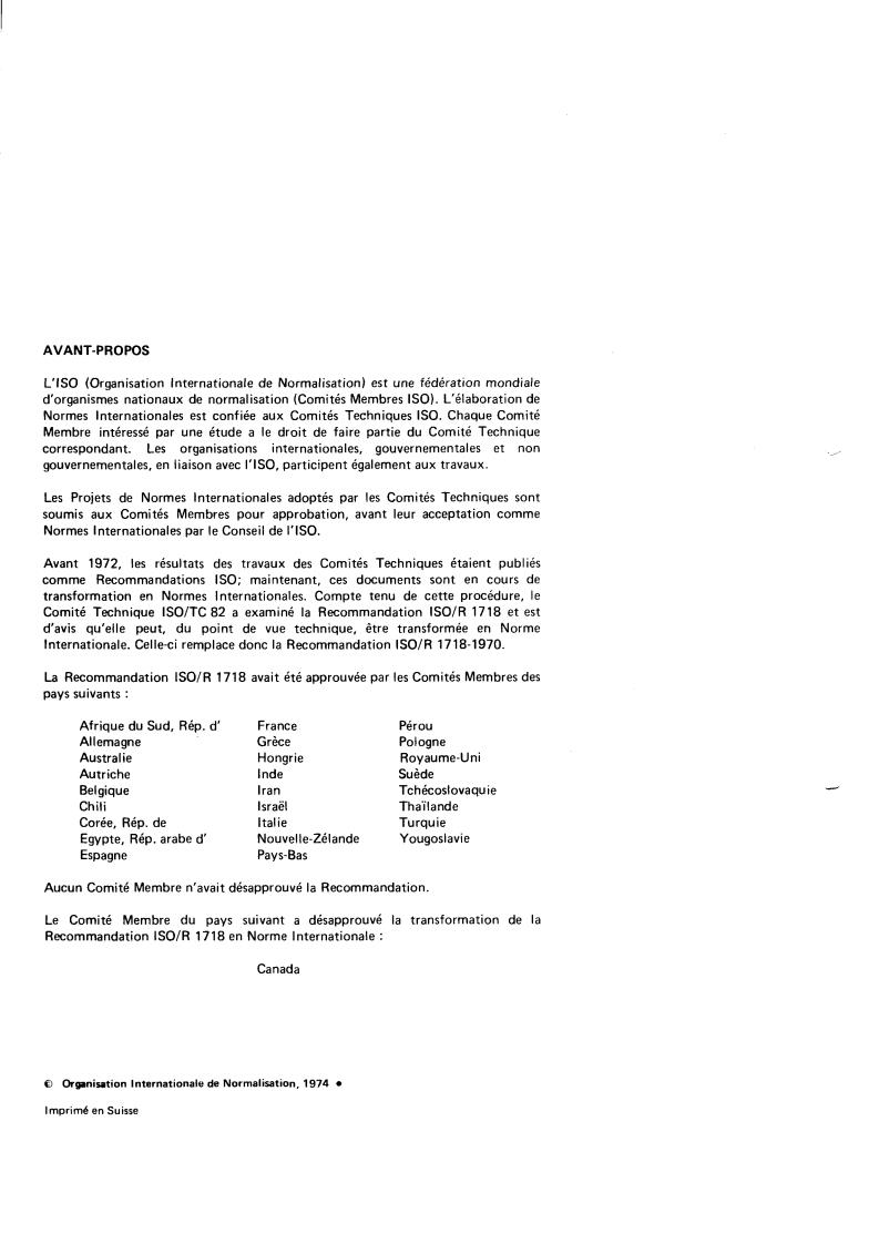 La Recommandation ISO/R 1718 avait été approuvée par les Comites Membres des