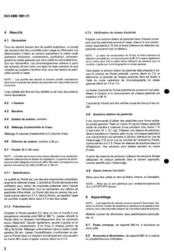 4.7 Florisil, 60 à 100 mesh. 6 mois.