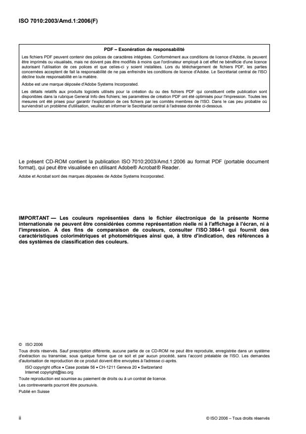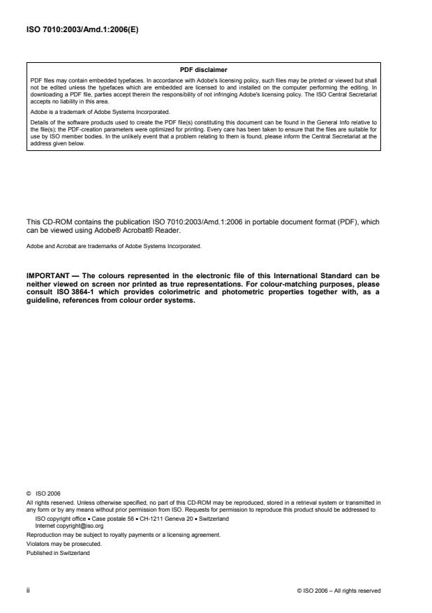 This CD-ROM contains the publication ISO 7010:2003/Amd.1:2006 in portable document format (PDF), which