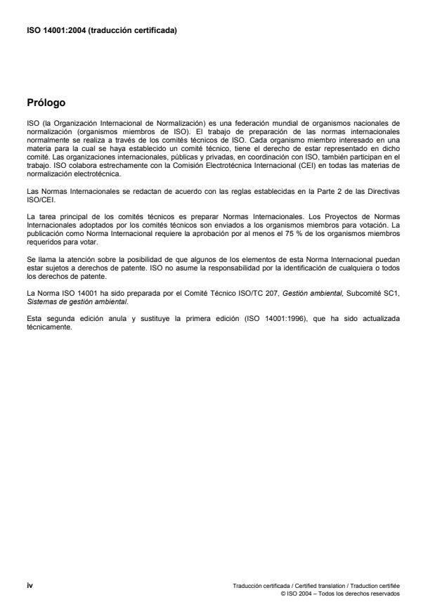 L'ISO 14001:2004 spécifie les exigences relatives à un système de management environnemental permettant à un organisme de développer et de mettre en oeuvre une politique et des objectifs, qui prennent en compte les exigences légales et les autres exigences auxquelles l'organisme a souscrit et les informations relatives aux aspects environnementaux significatifs. Elle s'applique aux aspects environnementaux que l'organisme a identifiés comme étant ceux qu'il a les moyens de maîtriser et ceux sur lesquels il a les moyens d'avoir une influence. Elle n'instaure pas en elle-même de critères spécifiques de performance environnementale. L'ISO 14001:2004 est applicable à tout organisme qui souhaite établir, mettre en oeuvre, tenir à jour et améliorer un système de management environnemental; s'assurer de sa conformité avec sa politique environnementale établie; et démontrer sa conformité à l'ISO 14001:2004 en a) réalisant une auto-évaluation et une autodéclaration, ou b) recherchant la confirmation de sa conformité par des parties ayant un intérêt pour l'organisme, telles que les clients, ou c) recherchant la confirmation de son autodéclaration par une partie externe à l'organisme, ou d) recherchant la certification/enregistrement de son système de management environnemental par un organisme externe. Toutes les exigences de l'ISO 14001:2004 sont destinées à être intégrées dans n'importe quel système de management environnemental. Le degré d'application dépendra de divers facteurs, tels que la politique environnementale de l'organisme, la nature de ses activités, produits et services, et sa localisation et les conditions dans lesquelles il fonctionne. L'ISO 14001:2004 fournit également, dans l'Annexe A, des lignes directrices informatives pour son utilisation.