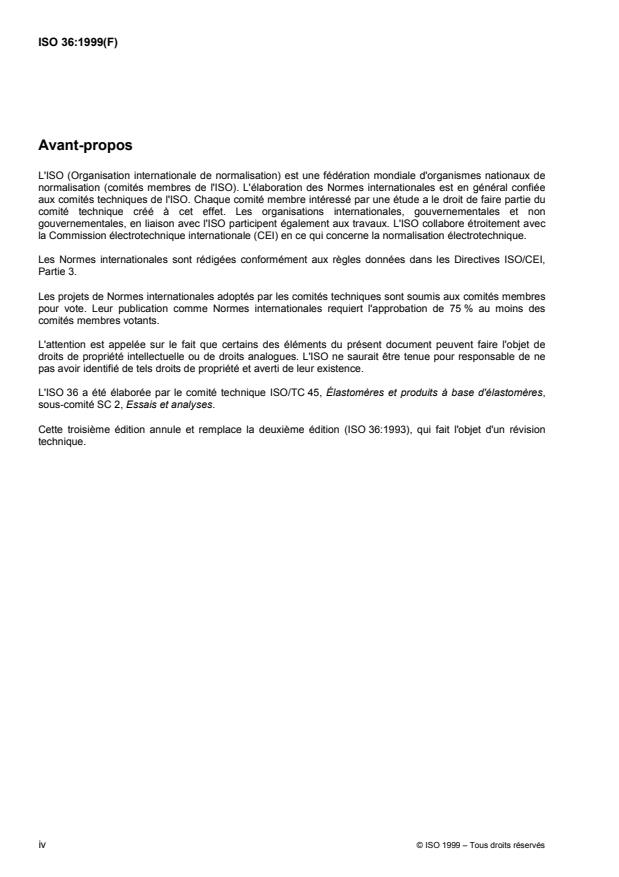 Cette troisième édition annule et remplace la deuxième édition (ISO 36:1993), qui fait l'objet d'un révision