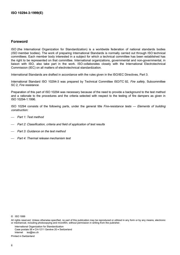 International Standard ISO 10294-3 was prepared by Technical Committee ISO/TC 92, Fire safety, Subcommittee