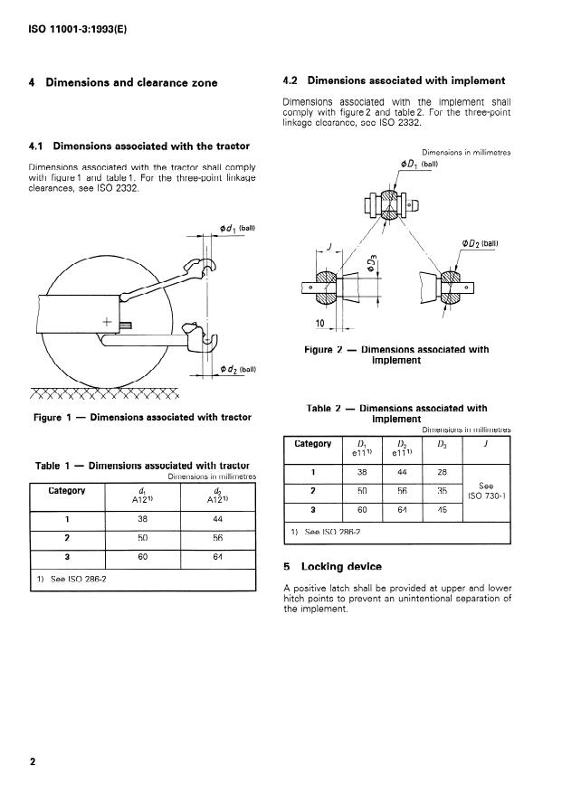 ISO 11001-3:1993 is a standard published by the International Organization for Standardization (ISO). Its full title is "Agricultural wheeled tractors and implements — Three-point hitch couplers — Part 3: Link coupler". This standard covers: Specifies the essential dimensions for the attachment of three-point hitch implements to agricultural wheeled tractors equipped with a three-point free link hitch according to ISO 730-1 or ISO 8759-2, and a set of link couplers. The three-point hitch coupler systems constitute a special method of implement mounting. The hitch couplers are an additional component located between the three-point linkage and the implement making it possible to hitch and unhitch from the operator's seat. Applies to categories 1 to 3 of agricultural wheeled tractors as defined in ISO 730-1.