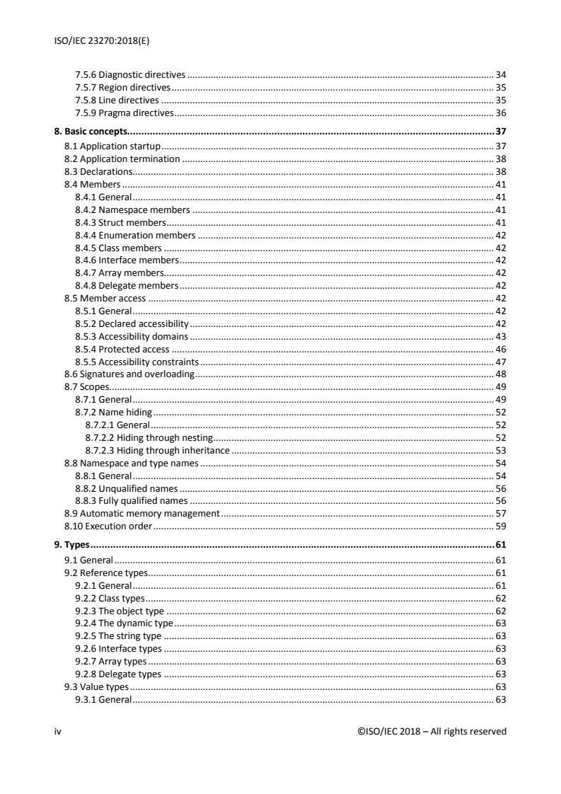 Keywords: ISO/IEC 23270:2018, C# standard, C# language specification, programming languages, C# syntax, C# semantics, compiler conformance, lexical grammar, types, automatic memory management.