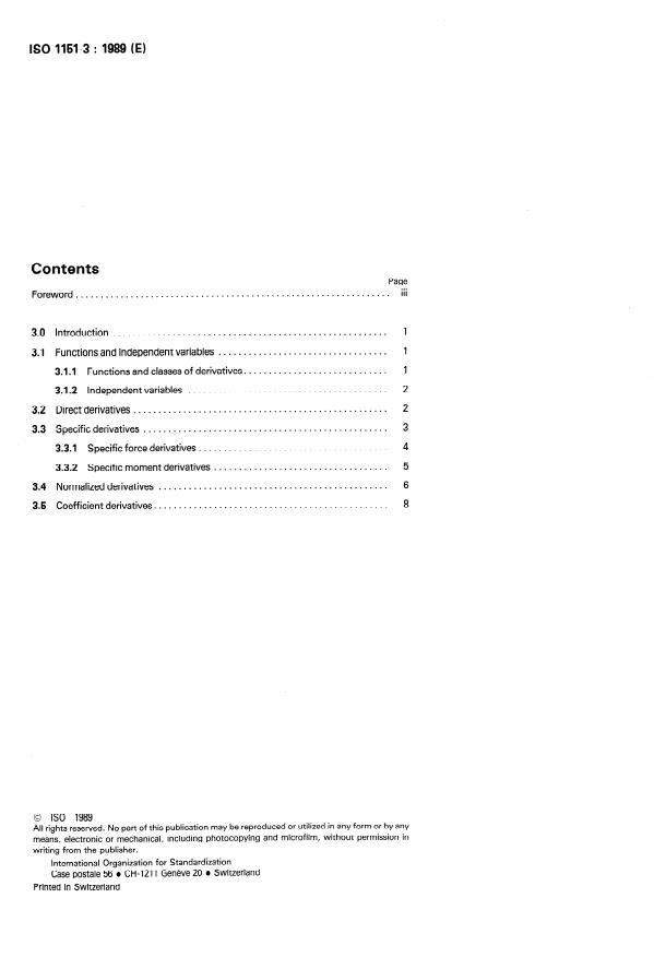 ISO 1151-3:1989 is a standard published by the International Organization for Standardization (ISO). Its full title is "Flight dynamics - Concepts, quantities and symbols - Part 3: Derivatives of forces, moments and their coefficients". This standard covers: Deals with derivatives of forces, moments and of other quantities characterizing such forces and moments. The term "derivative" designates the partial derivative of a function with respect to an independent variable. These derivatives appear in the terms of the Taylor series representing the variations of functions with the independent variables. Is restricted to first-order terms. Terms of higher order would require additional definitions of higher order. The aircraft is assumed to be rigid. However, most of the definitions can be applied to the case of a flexible aircraft.