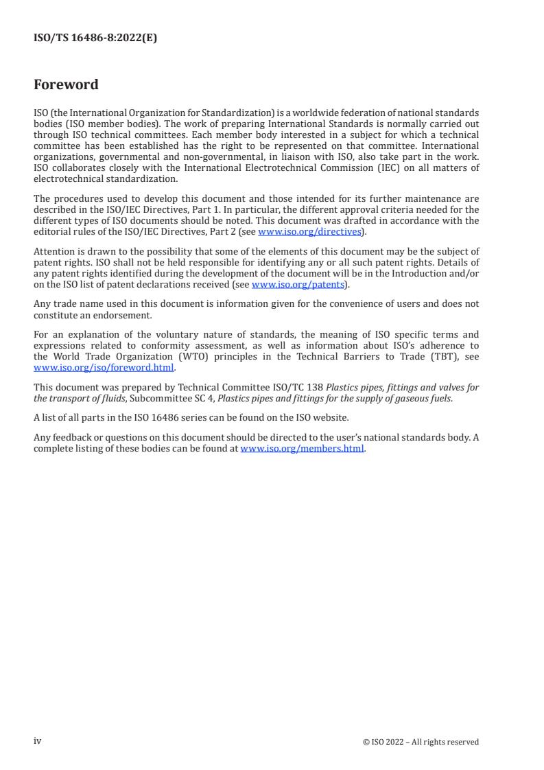 ISO/TS 16486-8:2022 - Plastics piping systems for the supply of gaseous fuels — Unplasticized polyamide (PA-U) piping systems with fusion jointing and mechanical jointing — Part 8: Training and assessment of fusion operators Released:23. 09. 2022