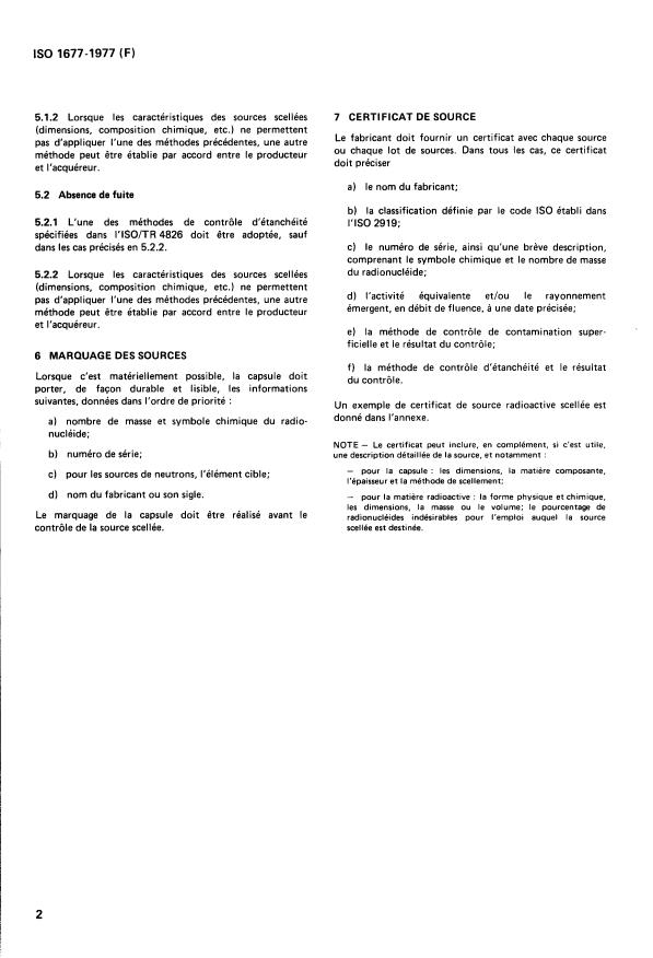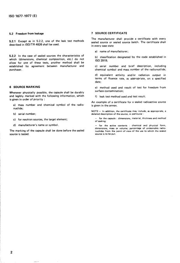 ISO 1677:1977 is a standard published by the International Organization for Standardization (ISO). Its full title is "Sealed radioactive sources — General". This standard covers: Sealed radioactive sources — General