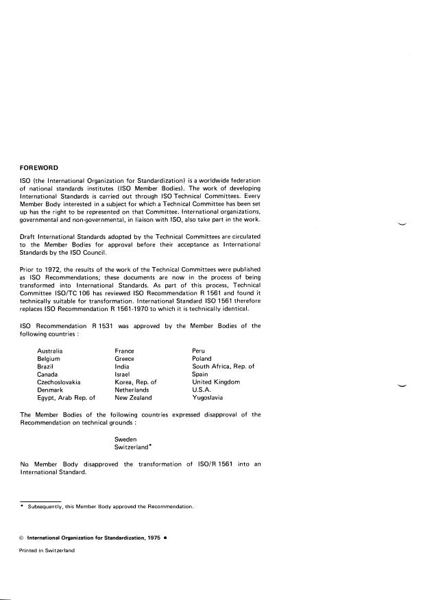 Committee ISO/TC 106 has reviewed IS0 Recommendation R 1561 and found it