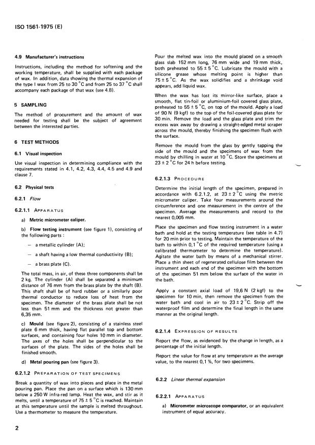 Les échantillons de cire, soumis à l'essai spécifié en 6.2.1,