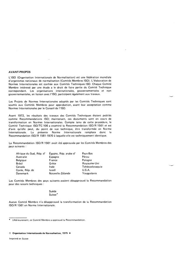 replaces IS0 Recommendation R 1561-1970 to which it is technically identical.