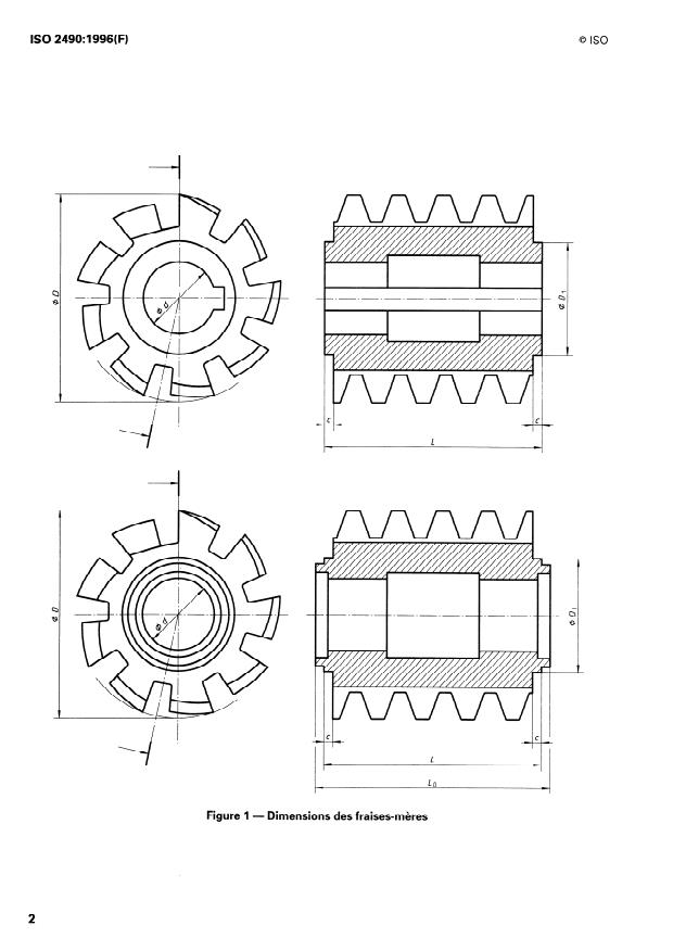 ISO 2490:1996 - Fraises-meres monoblocs a un filet, a entraînement par tenon ou par clavette, de modules 1 a 40 -- Dimensions nominales