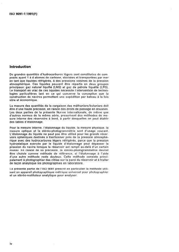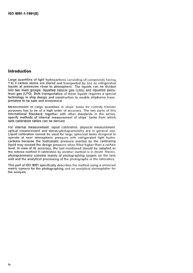 ISO 9091-1:1991 is a standard published by the International Organization for Standardization (ISO). Its full title is "Refrigerated light-hydrocarbon fluids — Calibration of spherical tanks in ships — Part 1: Stereo-photogrammetry". This standard covers: Describes a stereo-photogrammetric procedure for the internal measurement of spherical tanks. Lays down the calculation procedures for compiling the calibration tables.