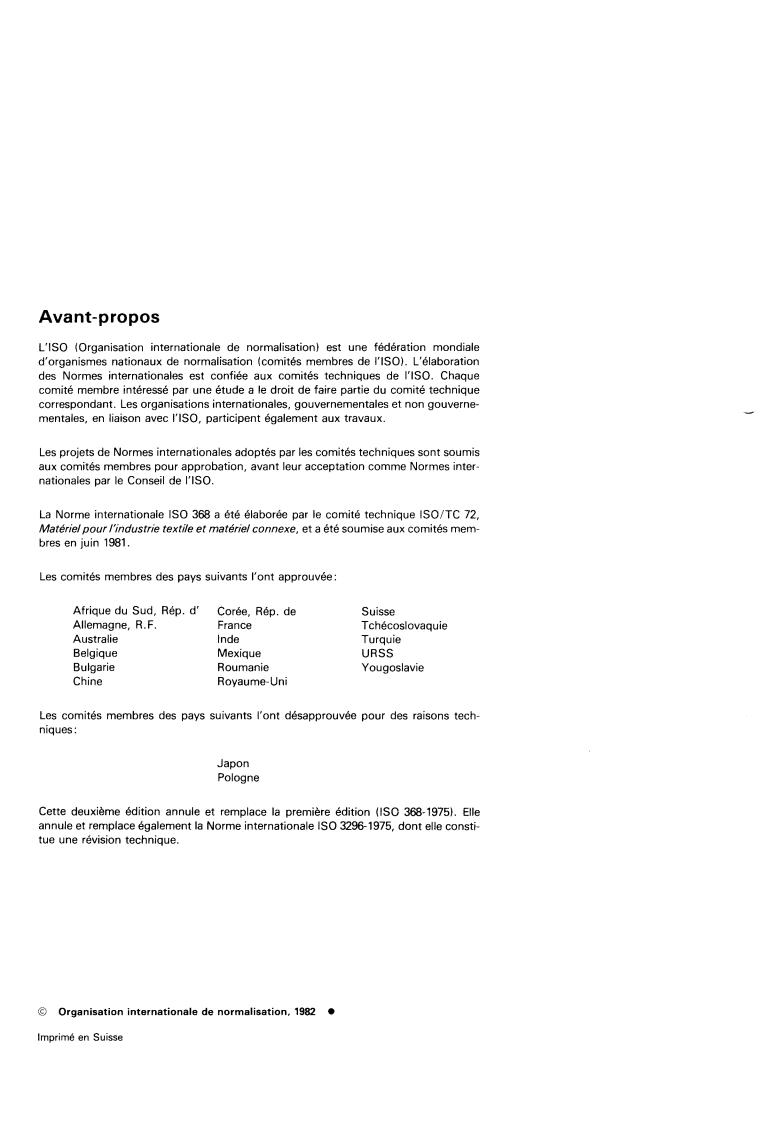 International Standard IS0 368 was developed by Technical Committee ISO/TC 72,