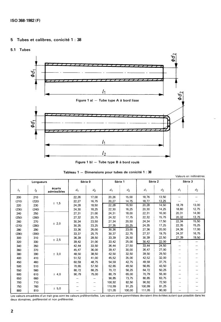 Figure 2 a) - Calibre de conicité 1 : 38 pour tubes de type A