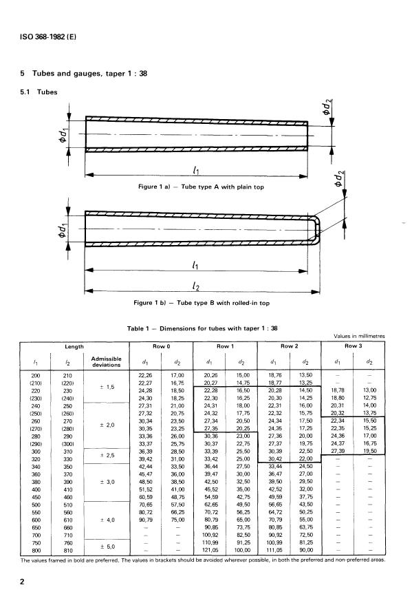 and inner diameter) of tubes with taper 1 : 38 and 1 : 64 for
