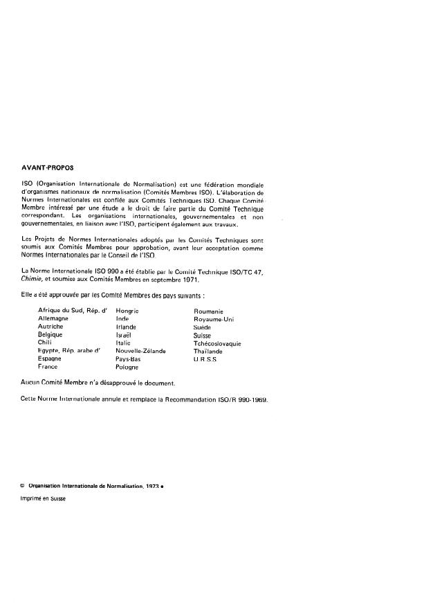 La Norme Internationale ISO 990 a été établie par le Comité Technique ISO/TC 47,