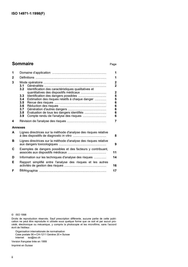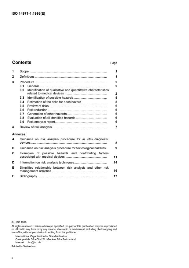 ISO 14971-1:1998 is a standard published by the International Organization for Standardization (ISO). Its full title is "Medical devices — Risk management — Part 1: Application of risk analysis". This standard covers: Medical devices — Risk management — Part 1: Application of risk analysis