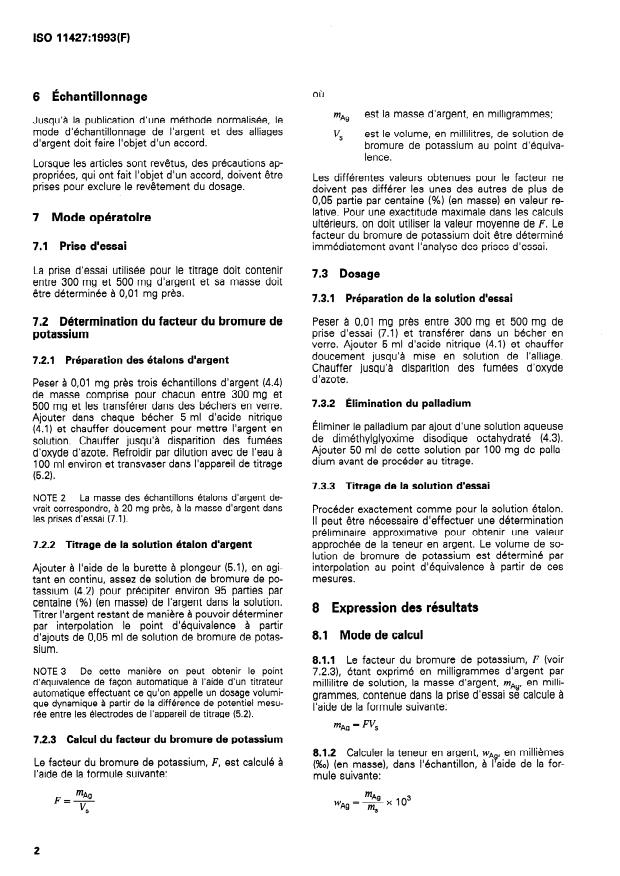 ISO 11427:1993 - Dosage de l'argent dans les alliages d'argent pour la bijouterie-joaillerie -- Méthode volumétrique (potentiométrique) utilisant le bromure de potassium