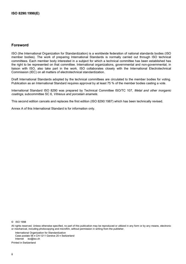 International Standard ISO 8290 was prepared by Technical Committee ISO/TC 107, Metal and other inorganic