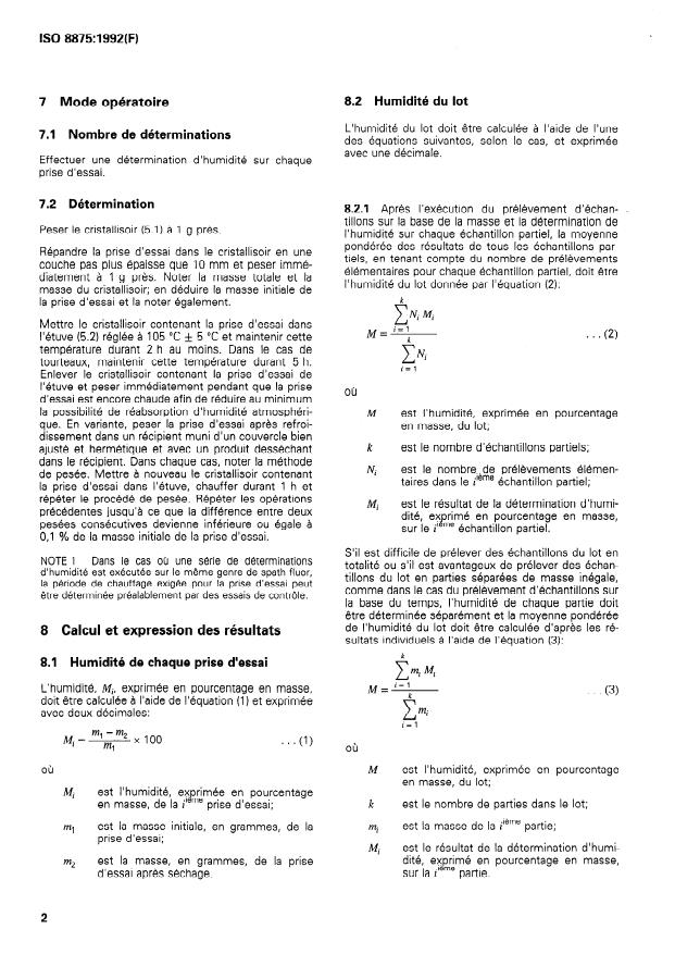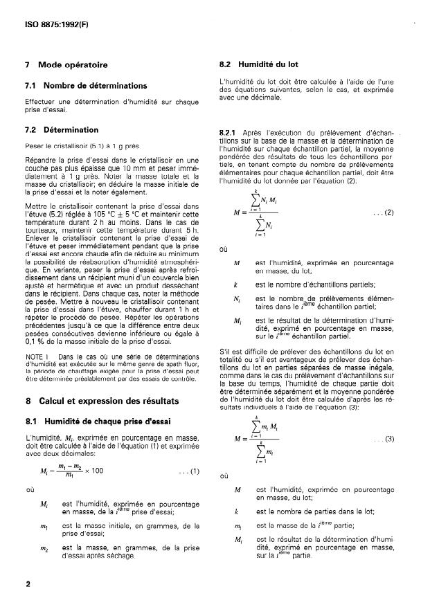 ISO 8875:1992 - Tous les spaths fluor -- Détermination de l'humidité d'un lot