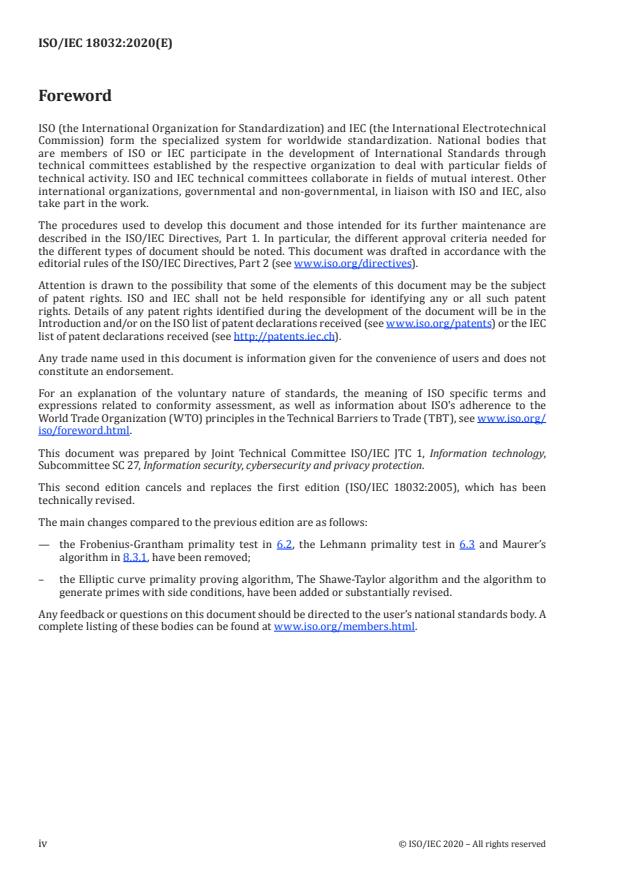 Keywords: ISO/IEC 18032:2020, prime number generation, primality testing, Miller–Rabin, ECPP, Shawe–Taylor, probabilistic primality tests, deterministic primality verification, cryptographic primes, ISO/IEC 18031.